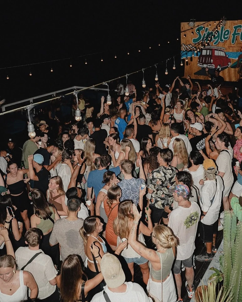 Tabu marks a turning point in the night as Uluwatu’s first true supper club, where dining and nightlife intentionally collide. Arriving here after sunset, the experience begins with a menu that blends Japanese precision and Latin American boldness, served in a space that feels sleek, moody, and designed for momentum. This is not a place where dinner signals the end of the evening. As plates are cleared, the lighting lowers, the music gains weight, and the room subtly shifts from refined dining to late-night energy. Cocktails flow with purpose, DJs take control without overwhelming the space, and the crowd transitions seamlessly from seated conversations to standing movement. You are no longer warming up. You are fully inside the night now.