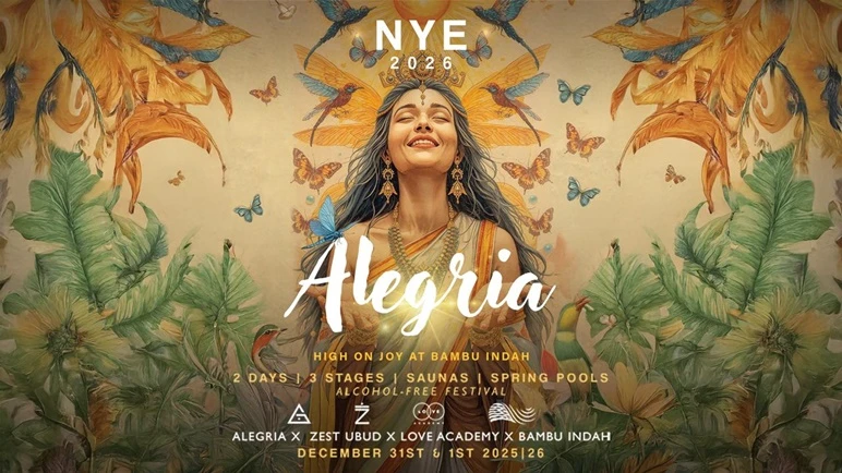 Alegria returns as a two day celebration at its new home in Bambu Indah, inviting guests into a world of rivers, natural pools, jungle beauty, and three stages filled with global and Indonesian artists who blend tribal soul, sacred sounds, deep bass, and cosmic rhythms. The festival remains proudly alcohol free and family friendly, offering workshops, ceremonies, art installations, and dedicated spaces for children, making it a rare NYE choice for those who want to enter 2026 with nature, community spirit, and a sense of grounded renewal.