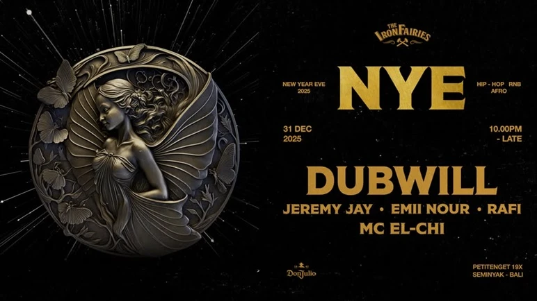Inside the moody, enchanted labyrinth of The Iron Fairies, NYE slips into something darker and groovier. Bali-based DJ Dubwill brings Hip-Hop, R&B, Afro beats, Dancehall, Amapiano, and future-forward sounds to the night. Bottles sparkle under dim lights, silhouettes move in sync, and the venue’s mystical aesthetic sets the perfect tone for the last Wednesday of the year. It feels intimate yet electrifying, perfect for guests who prefer underground beats over big outdoor stages.