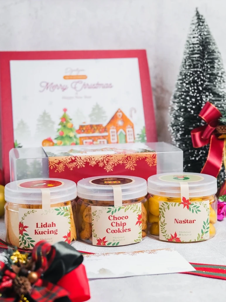 Festive cheer is serious business at Djadjan. Their Christmas hampers come fully decorated with tags, ribbons, ornaments, and a greeting card to match the joyful energy of the season. Expect popular holiday cookies like Lidah Kucing, Choco Chip, and the ever-loved Nastar. Perfect for surprising coworkers, pampering family members, or delighting clients.