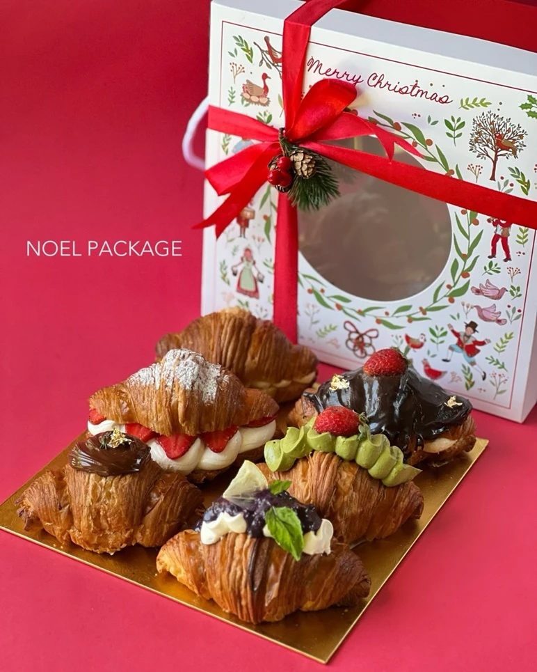 Known for artistic bakes, Fruitcrush brings creativity to the forefront. Their Christmas hampers showcase handcrafted croissants, dainty mini cakes, and showstopping roll cakes shaped like mini Santa figures or mistletoe. It is a delightful pick for anyone who enjoys playful presentations and elevated flavour.