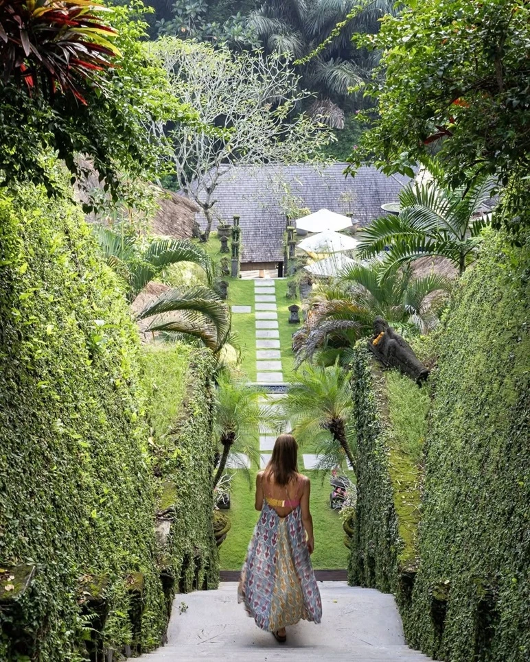 One of 'hidden' destinations amidst vibrant Canggu, Desa Seni is a beautiful eco-village offering dedicated wellness programs. The retreat is situated on an expansive property that features beautifully landscaped gardens, lush rice fields, and traditional Balinese architecture. It features eco-friendly accommodations, solar-powered lighting, natural swimming pools, and organic gardens that provide fresh produce for its guests.