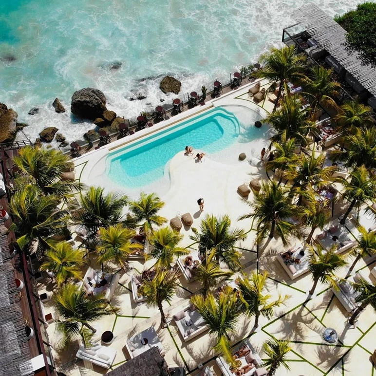 A stylish playground that mixes modern design with natural drama, Ulu Cliffhouse is one of the island’s hottest addresses. Designed by Shed London with food by celebrated chef Diego Muñoz, drinks by Albie Barratt, and an in-house studio led by music producer Neil McLellan, it brings together serious creative talent. The vibe shifts seamlessly from poolside lounging to champagne lunches to sunset DJ sets. All of this happens against the backdrop of Uluwatu’s most breathtaking cliffside panorama.