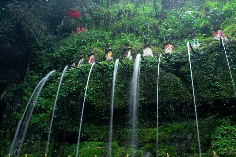 Meaning “eleven spouts,” Pancoran Solas is exactly what its name promises. Before the ritual, visitors usually pray at Taman Mumbul Temple nearby. To take part in the Melukat ceremony, prepare eleven canang (offerings) and a pejati. Begin by praying and placing the offerings at each spout, then step into the water. Gargle three times, sip the holy water three times, and pour it over your head to start the purification. The eleven streams are believed to wash away all forms of negativity, leaving you calm and spiritually refreshed.