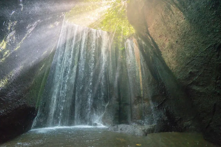 As one of the prime destinations for Melukat, Tukad Cepung offers a mystical ambiance that enchants the soul and cleanses the spirit. Surrounded by towering cliffs and lush greenery, the cascading waters create a mesmerizing play of light and shadows, adding an ethereal touch to the experience. The waterfall's hidden location in rural Bangli regency further contributes to its mystical allure, inviting seekers of spiritual enlightenment to immerse themselves in its rejuvenating embrace.
