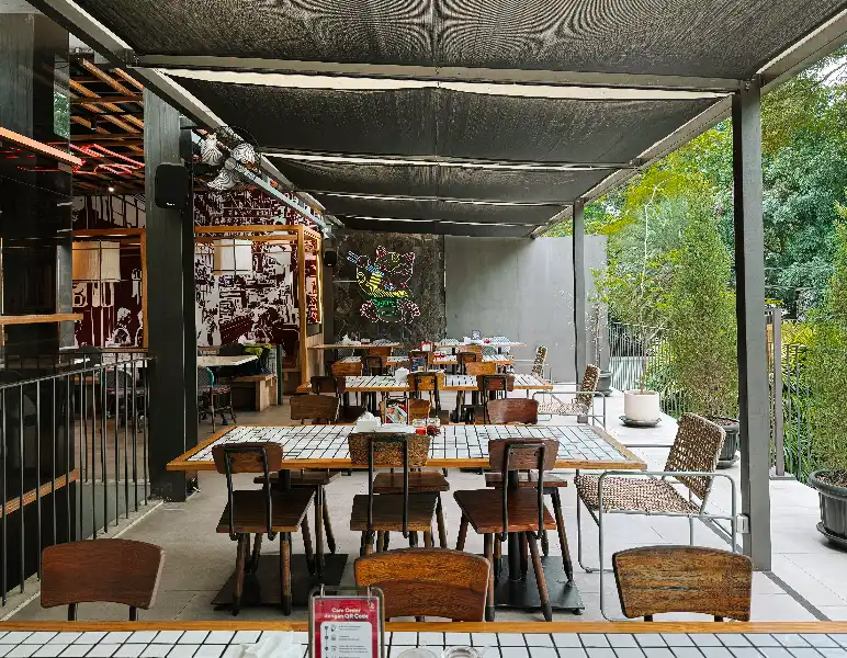What really stayed with us, though, was the space itself. As we looked around, we noticed how the interior blends modern design with subtle Hong Kong references — tiled walls, warm wood accents, and lantern-style lighting that gives the room a soft, welcoming glow. The round tables make sharing dishes easy, while booth seating feels comfortable enough for longer meals. There’s also an outdoor area that feels airy and relaxed, especially inviting during the day. The overall atmosphere reminded us of scenes from classic Chinese films, but with a clean, contemporary touch that still feels very Bandung.