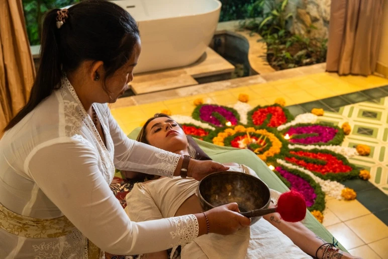 Rhythms of Renewal is a transformative ritual that unites two powerful healing arts; sound therapy and Balinese massage into a single, deeply relaxing journey. This 60-minute experience begins with the gentle, ancient techniques of a Traditional Balinese Massage, relieving muscle tension, improving circulation, and grounding the body. As the treatment progresses, the soothing waves of sound healing begin to flow through the room. Crystal-clear tones vibrate across the senses, encouraging emotional release, mental clarity, and inner calm. The result is a holistic rebalancing of body and spirit; a quiet awakening of your natural energy flow that leaves you feeling lighter, clearer, and profoundly at peace.