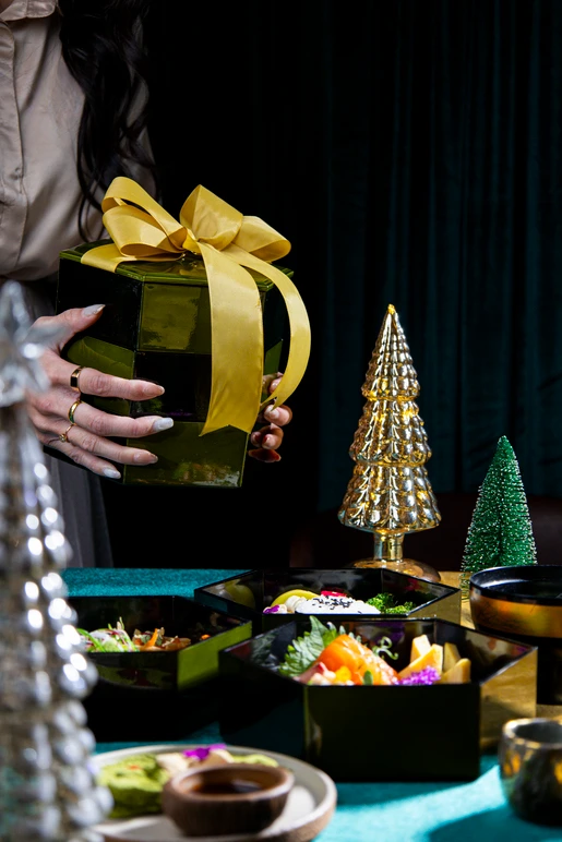 Unwrap the magic with Festive in Bento, a trio of exquisite surprises presented like a Christmas gift, meticulously crafted with Japanese artistry. Each bento comes with A Holiday Note from Santa: "Ho ho ho! As you open this Festive in Bento, think of it as a little present from me to you—wrapped with care, sprinkled with nostalgia, and filled with the quiet magic of the season." Available at IDR 500,000++, with an optional sake pairing for an additional IDR 300,000++.