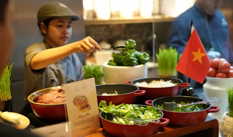 From 3 to 9 November 2025, guests are invited to embark on an exquisite gastronomic journey that highlights the balance, freshness, and aromatic complexity that define Vietnamese cuisine. The curated menu includes beloved classics such as Phở Bò, the soul-warming beef noodle soup simmered to perfection; Bánh Xèo, a crispy and savory pancake filled with fresh ingredients and fragrant herbs; the iconic Bánh Mì, a crunchy baguette layered with flavorful fillings; Cà Ri Gà, a comforting chicken curry enriched with coconut milk and lemongrass; and Chè Đậu Xanh, a refreshing mung bean sweet soup that perfectly rounds out the meal. Each dish is crafted with traditional techniques and authentic ingredients sourced directly from Vietnam, ensuring every bite captures the essence of its heritage.
