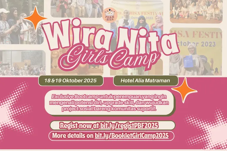 Welcome to Wira Nita Girls Camp 2025—a transformative experience designed for young women ready to grow, lead, and make an impact. Held on October 18–19, 2025 at Hotel Alia Matraman, this camp offers a dynamic blend of interactive workshops, project mapping sessions, and a supportive sisterhood circle that will empower you to take your ideas from vision to action.