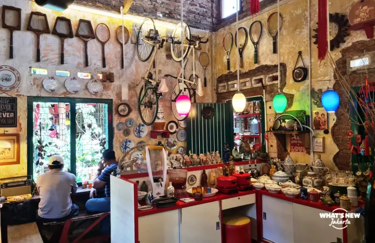 The building itself is intentionally simple, with certain corners left delightfully unfinished, adding to its rustic character. Every inch of Warung Roeken tells a story. Antique telephones, retro radios, faded posters and delicate ceramic crafts line the walls. Betawi and Chinese ethnic touches weave through the décor, creating an atmosphere that feels like a time capsule — classic, warm and quietly poetic.