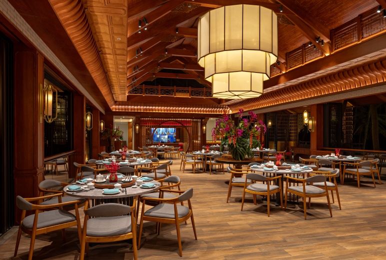 Stepping into Jade River reveals an atmosphere of serene elegance. The interior takes cues from classic Chinese architecture, featuring warm wood textures, golden accents, and soft lighting that evoke a sense of harmony and prosperity. Designed as an inclusive dining venue, Jade River offers authentic Chinese flavours carefully prepared without the use of pork or lard — allowing every guest to savour its creations with confidence and comfort.