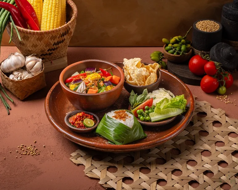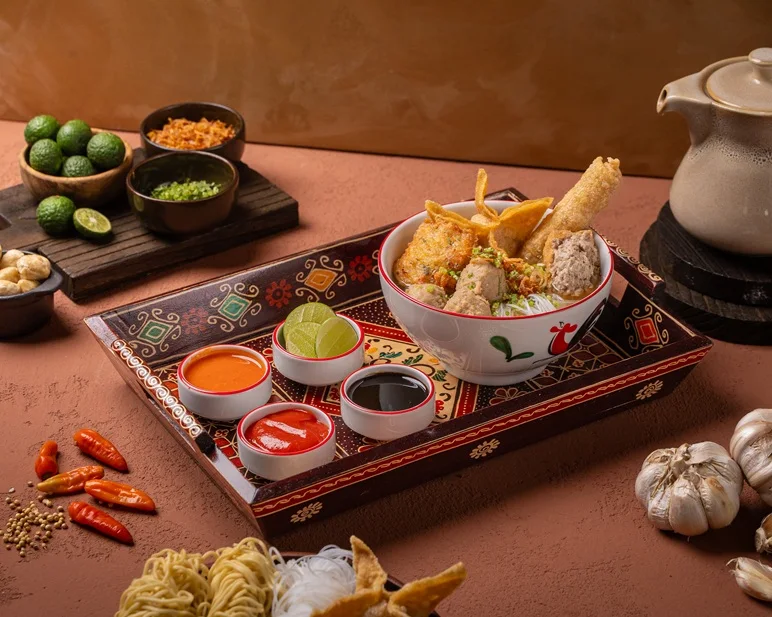 In the towering kitchens of The Westin Jakarta, Executive Sous Chef Chiko Fonia turns his attention to the comforting flavors of Malang. His Bakwan & Bakso Malang captures the joyful chaos of Indonesia’s street food culture – golden fritters crisp from a dip into hot oil, paired with springy meatballs bobbing in a clear, aromatic broth. It is a dish that belongs equally on roadside carts and hotel dining rooms. Chef Chiko also presents Sayur Lodeh, a slow-simmered vegetable stew where coconut milk, galangal, turmeric leaf, and fermented soybean paste build a broth that is rich, earthy, and beautifully complex.