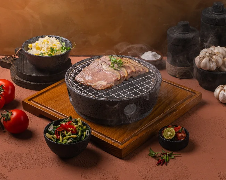 From Courtyard by Marriott Bali Seminyak Resort, Executive Chef Donald Hutauruk turns to the bold flavors of eastern Indonesia with Se’i Sapi, a dish that begins with smoke. Beef is gently cured, then slow-smoked until the aroma deepens into something irresistible - a delicious mingling of wood and spice that lingers long before the first bite. Chef Donald also presents Serabi Solo, delicate rice flour pancakes kissed by coconut milk and caramelized palm sugar. Soft, fragrant, slightly crisp at the edges, it is the perfect introduction to one of the most beloved Indonesian desserts.