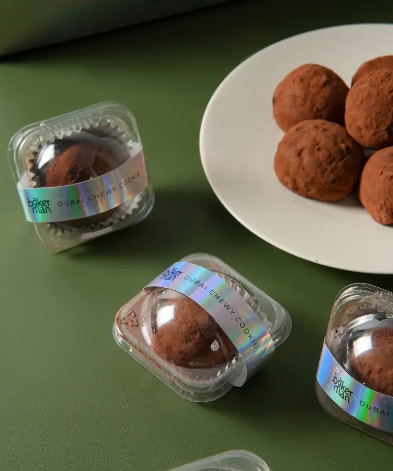 Bakerman’s Dubai Chewy Cookie delivers a playful contrast in every bite—soft, stretchy, and irresistibly chewy, with a pistachio kunafa center adding just the right crunch and a hint of sweet-salty balance. Wrapped in a pillowy marshmallow layer and dusted generously with cocoa, it’s light yet indulgent, melting slowly into a satisfyingly soft finish.