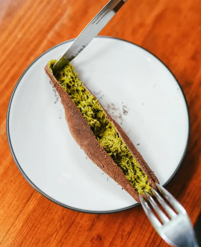 Namelaka’s Dubai Chewy Cookie leans into indulgence with its perfectly stretchy, chewy dough and a rich, buttery pistachio kunafa core. Finished with a dusting of Callebaut cocoa powder, it delivers a bold mix of nutty depth and soft, satisfying texture in every bite.