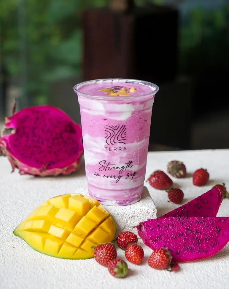 Terra, a health-driven restaurant, serves a range of vibrant, colorful smoothies designed to energize and refresh. Each blend is crafted to fuel your day with a lively burst of color and natural flavor, proving that healthy can be both nourishing and satisfying.