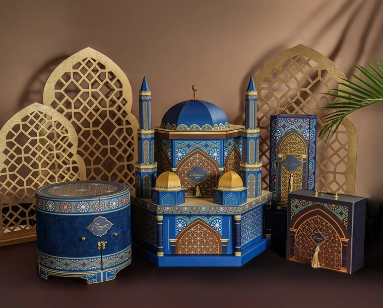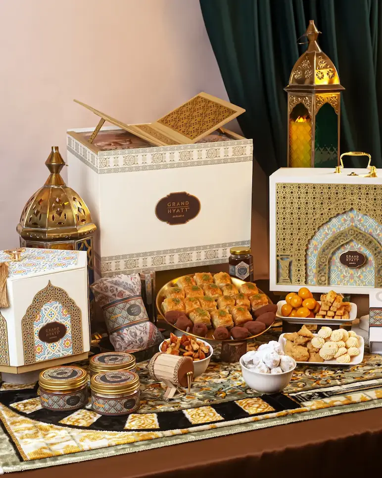 This Ramadan, the art of gifting is celebrated through a Four Seasons hampers collection. Thoughtfully designed to honor the spirit of giving, and inspired by the beauty of Arabic geometric patterns, Chef Lorenzo curated elegant color combination of deep - teal blue palette with intricate motifs that echo the charm of Middle Eastern stories.