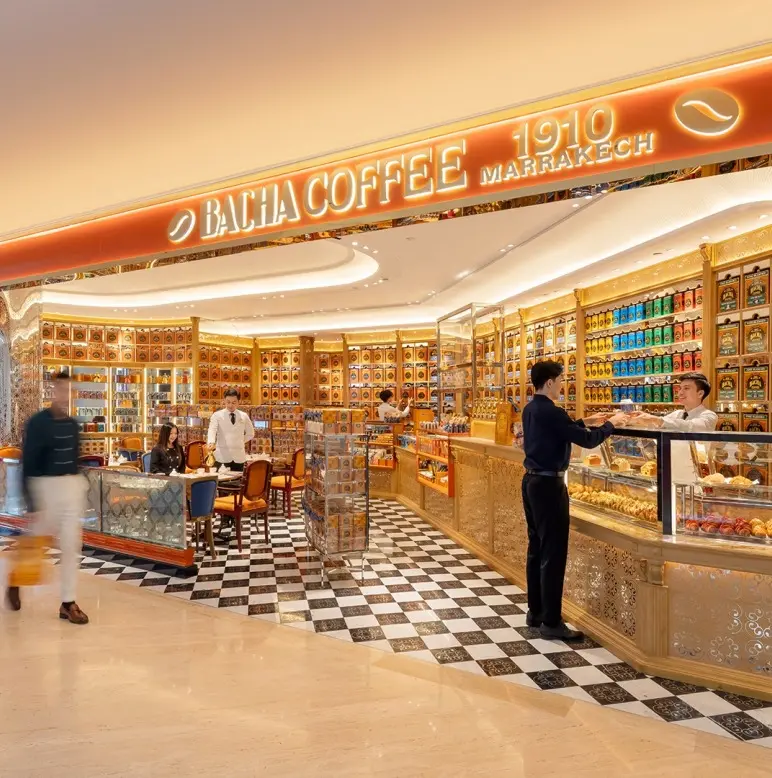 Originally from Marrakech, Morocco, in a coffee shop in Dar el Bacha, Bacha Coffee brings a touch of grandeur to Jakarta with its Moroccan-inspired interiors, golden tones, and elegant presentation. Every detail — from the aroma of freshly ground beans to the sleek packaging — exudes sophistication.