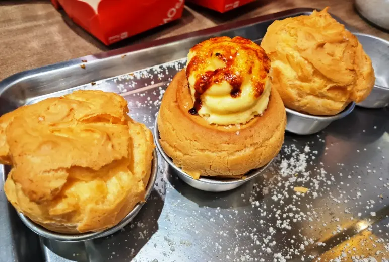 Power Puff brings a taste of Taiwan to Glodok with its freshly made “burning puff,” tucked inside the ever-busy Petak Enam area. The pastry is baked until soft and lightly crisp, then filled to order with cool, creamy custard that contrasts beautifully with the warm shell. It’s simple, indulgent, and quietly addictive.