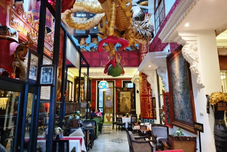 Tucked inside House of Tugu in Old Town Jakarta, Babah Koffie by Kawisari is less a coffee stop and more a time capsule steeped in heritage. Here, traditional Javanese coffee takes center stage—brewed from sustainably grown beans sourced directly from the Kawisari Coffee Plantation in East Java—delivering a cup that’s as rich in story as it is in flavor. Each sip unfolds like a journey through Indonesia’s deep-rooted coffee culture, best enjoyed beneath an opulent ceiling crowned by a striking dragon installation. Surrounded by high art pieces and a setting that leans delightfully extravagant, Babah Koffie feels theatrical, immersive, and quietly transportive.
