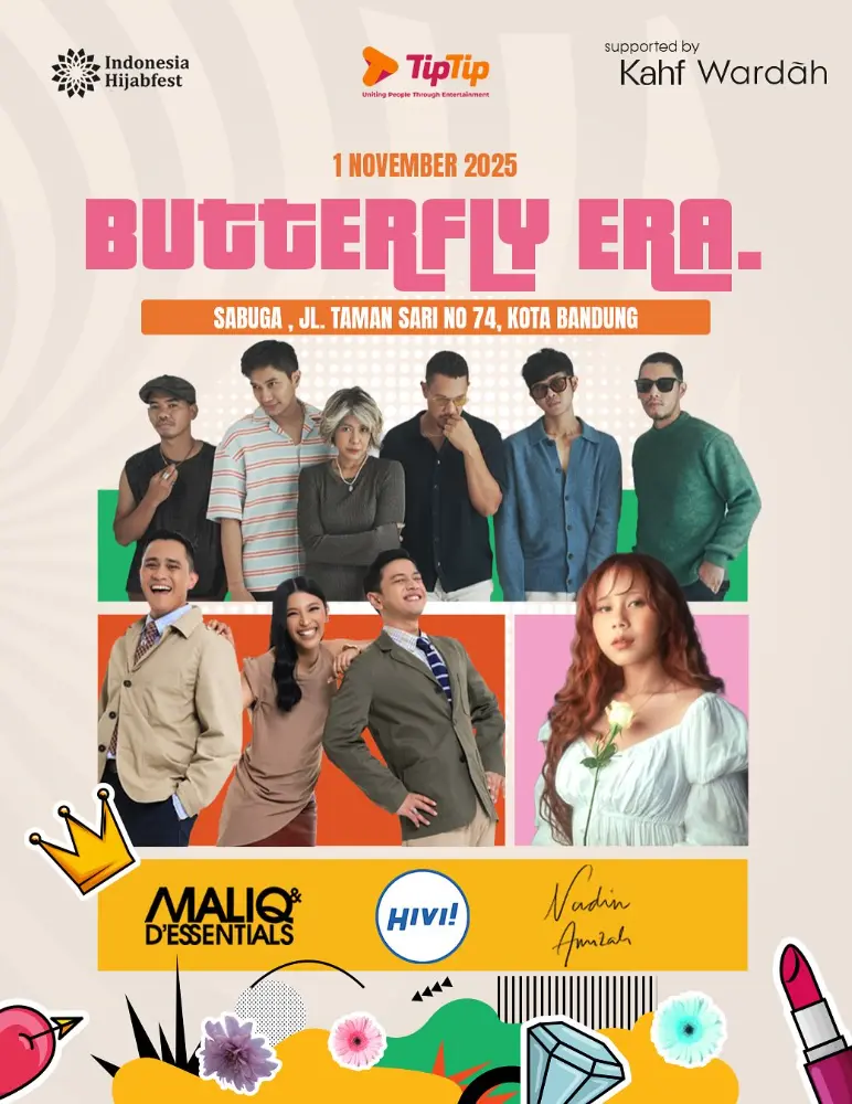 🎶 Get ready, Bandung! ✨ 🦋 The Butterfly Era is coming Indonesia Hijabfest Special Concert featuring: Maliq & D’EssentialsNadin AmizahHivi!