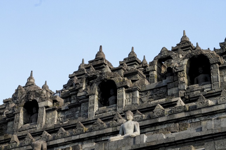 Borobudur is a temple featuring numerous stupas that contain instructions for humans to distance themselves from worldly desires and achieve enlightenment and wisdom, as per Buddhist teachings. Borobudur also has the most comprehensive and extensive collection of Buddhist reliefs in the world.