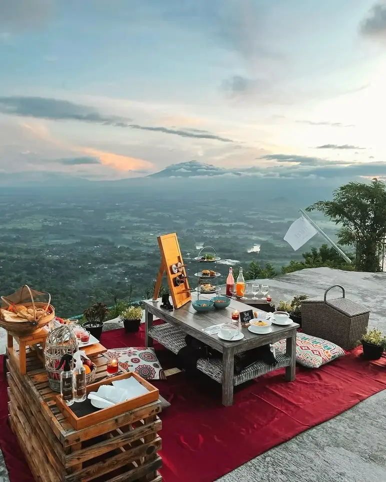 This viral café is perched on a hillside, offering panoramic views of the Borobudur landscape. With cozy seating, good coffee, and Instagram-worthy views, it’s a favorite hangout for young travelers.