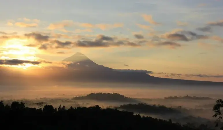 For one of the most breathtaking views in the Borobudur area, head to Punthuk Setumbu Hill at dawn. The misty landscape with Borobudur and Mount Merapi in the background creates a magical panorama.