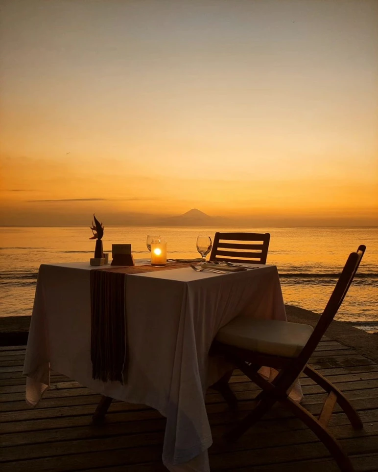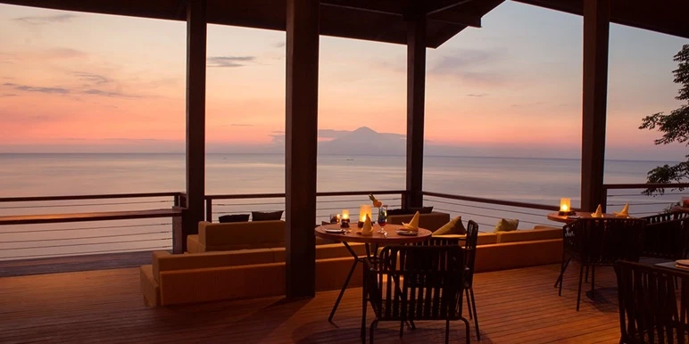 At Qunci Villas, Quali Asian Dining offers an inviting beachfront atmosphere with incredible views of Mt. Agung in the distance. This open-air restaurant serves delectable Asian and Indonesian dishes in a serene setting, ideal for a peaceful breakfast or a romantic dinner. Enjoying a meal here with the calming waves as a soundtrack is a quintessential Lombok experience.