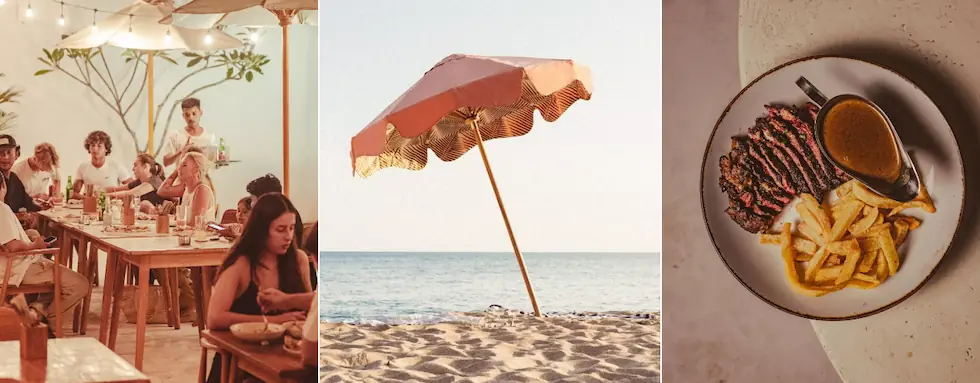 Beach lunch → sunset drinks → destination dinner → live music bar.