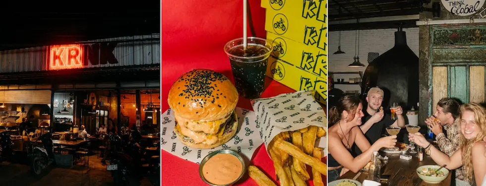 KRNK brings big personality to Kuta with hip hop tunes, cold drinks, and comfort dishes made with quality ingredients. Burgers, pastas, pizzas, and salad bowls come straight from the energetic open kitchen, now equipped with an Aurora pizza oven that levels up every slice. The vibe is social yet unpretentious, making it easy to settle in for a fun night. Delivery is available in the Kuta area for those days when staying in feels just right.