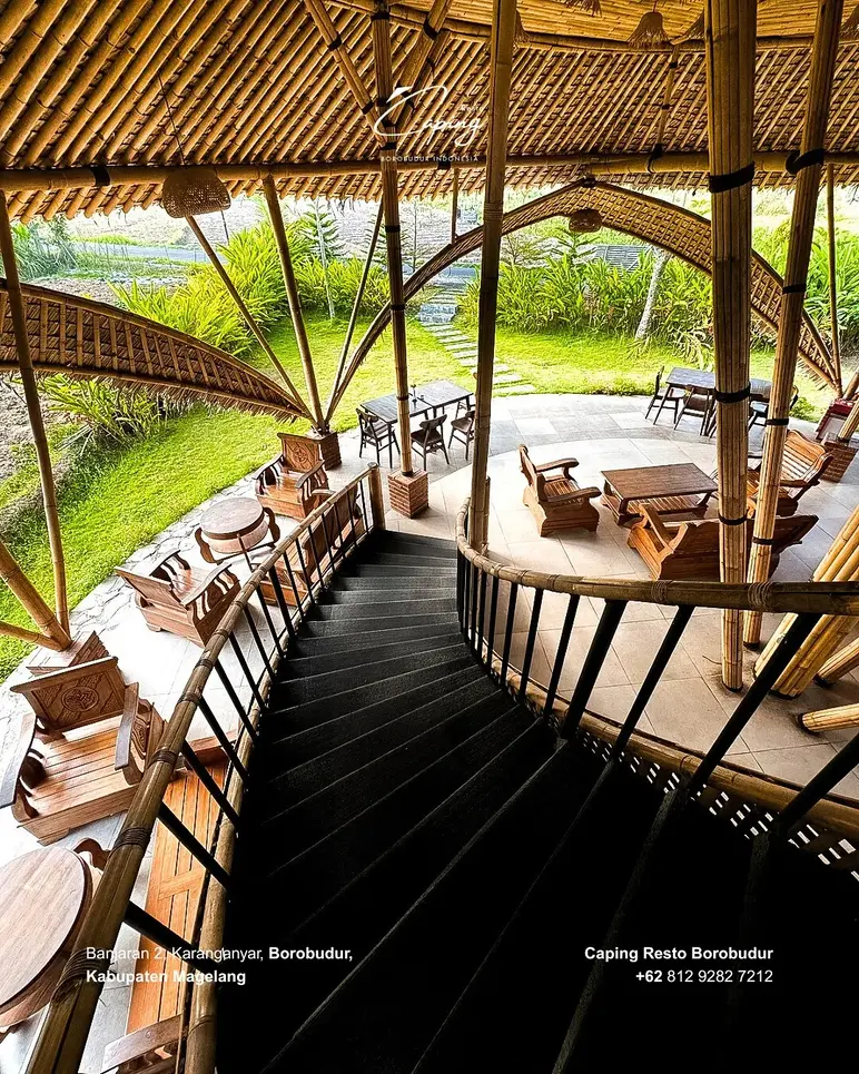Located just minutes from the temple, Caping Resto Borobudur is a premier choice for travelers seeking an authentic Javanese dining experience paired with a tranquil, panoramic view of the lush Menoreh Hills and surrounding rice paddies. Its open-air, traditional pavilion architecture allows for a refreshing breeze while you enjoy local specialties like Gurame Bakar, making it the perfect middle-ground option for those who want a scenic, high-quality meal without the ultra-luxury price tag of nearby resorts.