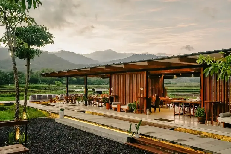 Balana Kitchen & Coffee Borobudur is a stylish and welcoming destination that offers a serene dining environment with a beautiful view of the lush Wanurejo countryside and the Menoreh Hills. Located just a short drive from the temple, this restaurant combines modern architectural elements with a cozy, semi-outdoor layout that perfectly frames the surrounding greenery. It is highly regarded for its artisanal coffee and a creative menu that features both local Indonesian favorites and Western fusion dishes, making it an ideal spot for a relaxed afternoon break or a scenic dinner after a day of exploration.