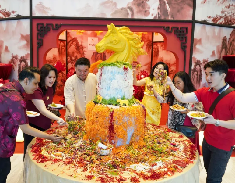 The celebration officially begins with an intimate Lunar gathering held at the lobby of Vasa Hotel Surabaya on Friday, 9 January 2026, from 14.00 to 17.00 WIB. This opening moment brings together key opinion leaders and media partners, marking the start of the Year of the Fire Horse festivities. The afternoon opens with a traditional Yee Sang ceremony led by Chef Lim Kim Loong, symbolising prosperity, unity, and good wishes for the year ahead. Guests are then invited to write their personal hopes and place them on the Wishes Tree, creating a thoughtful installation filled with reflection and intention. The experience continues at Xiang Fu Hai Chinese Restaurant, where guests enjoy a curated luncheon featuring dim sum, ginseng soup, and giant prawn, offering a graceful introduction to the main Lunar New Year celebration.