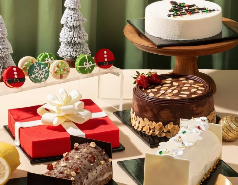 Their Sweet Hampers Collection features festive creations crafted with care, perfect for gifting or brightening your holiday table. Choose from a variety of whole cakes, Chocolate Almond Cake, Snow White Entrament, Raspberry Manjari, Hazelnut Yule Log, and Vanilla De Noel Yule Log, each priced at IDR 485,000 nett. For a lighter treat, the Macaron Christmas box offers six delicate pieces for IDR 150,000 nett. Beautiful, handcrafted, and full of holiday charm, these sweet delights make every celebration feel more special. Pre-order now and share the joy of Christmas.