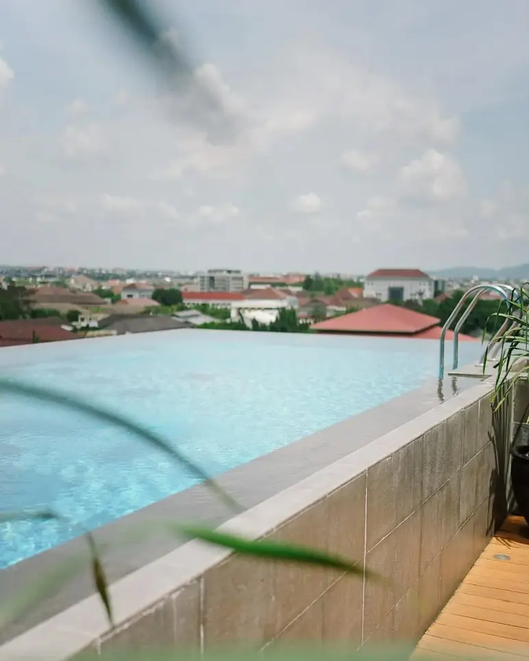 The Swiss-Belboutique Yogyakarta is known for having a chic and highly-rated rooftop pool that offers guests a beautiful elevated view of the city, making it a fantastic spot for a relaxing dip and enjoying the ambiance. This outdoor swimming area is part of the luxurious Chadis Rooftop & Pool Bar, providing a modern, vibrant setting with comfortable seating and the convenience of drinks and live entertainment nearby.