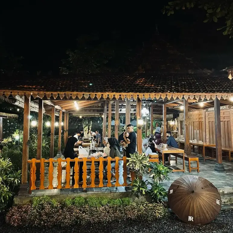 Joglo Resodinomo is a sprawling culinary oasis in West Yogyakarta that masterfully blends traditional Javanese charm with extensive family-friendly facilities. Spanning over 7,000 square meters, this rustic retreat features classic wooden Joglo architecture set amidst lush gardens and a tranquil riverside. It is a paradise for children, offering not just a well-equipped playground with slides and swings, but also a captivating mini-zoo where little ones can interact with rabbits and exotic birds. Renowned for its legendary Bebek Goreng H. Saidi (crispy fried duck), it provides a spacious, airy environment—complete with live music and private gazebos—where families can enjoy authentic local flavors while kids explore the safe, natural surroundings.
