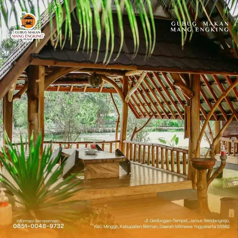 Gubug Makan Mang Engking Pusat is the iconic flagship destination that sets the gold standard for traditional family dining in Yogyakarta. Renowned for its signature Udang Bakar Madu (honey-grilled prawns), the restaurant offers an immersive experience where families dine in private bamboo huts (saung) perched directly over expansive fish ponds. It is a literal playground for the senses, allowing children to enjoy the thrill of feeding hundreds of hungry koi right from their dining table or exploring the lush, village-style grounds.