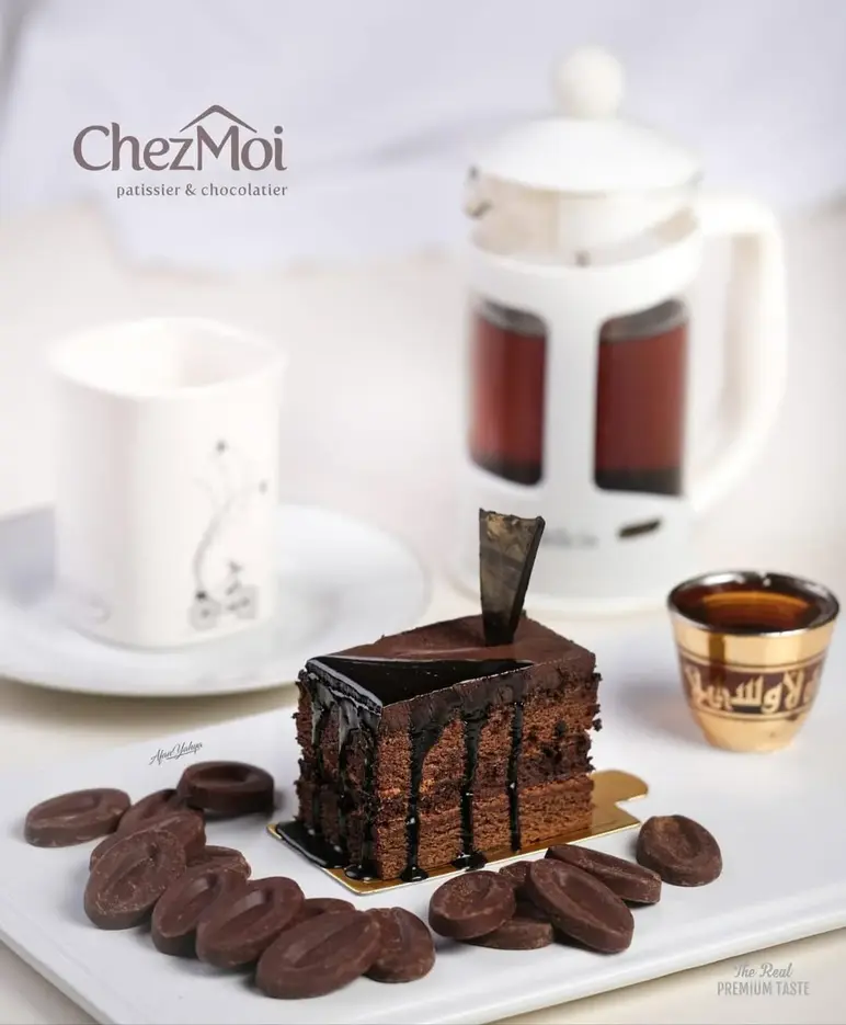 ChezMoi Patissier & Chocolatier is a sophisticated Yogyakarta dessert cafe that excels in high-quality French-inspired pastry, cakes, and artisan chocolates, making it a go-to spot for luxurious treats. Renowned for its elegant selection, ChezMoi is particularly famous for its moist and flavorful cakes like the Red Velvet Slice and Choco Palace, alongside premium bakery items like Milkbun and cookies.