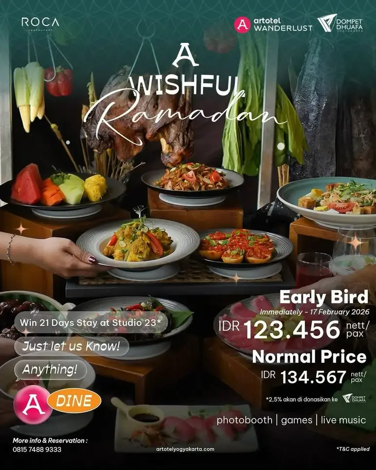 The Rich Jogja presents NgabubuRich as an iftar experience, which can be enjoyed from February 19 to March 19, 2026, starting from 5 pm-8 pm, at Pandan Wangi Restaurant, at a price of IDR 150,000 nett/pax (Buy 5 Get 1 Free).
