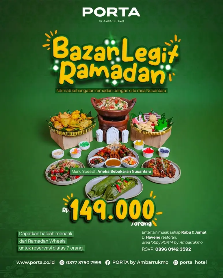 PORTA Hotel presents a Legit Ramadan Bazaar as an iftar experience during this year's Ramadan. Guests can enjoy a variety of Indonesian dishes for IDR 149,000 per person.