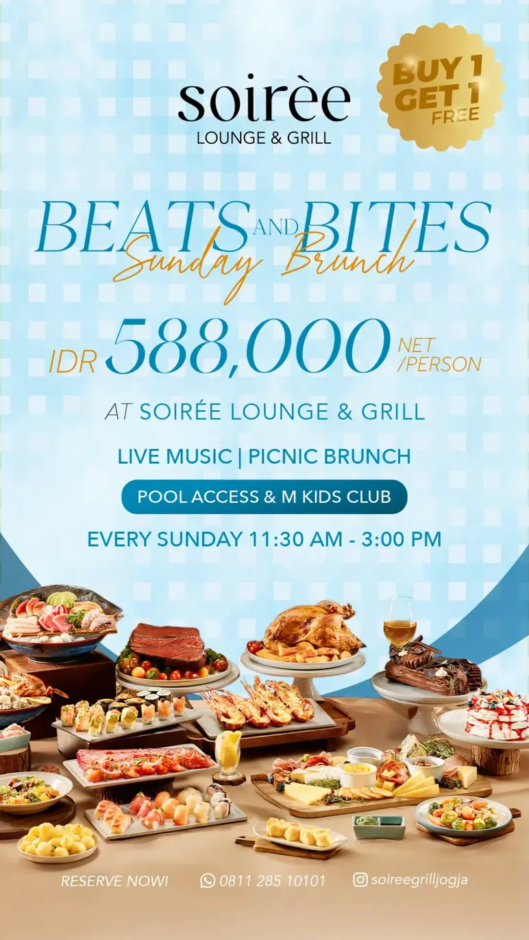 While the hotel is famous for its elaborate breakfast buffet at Yogyakarta Kitchen, it also hosts themed brunch and BBQ events at the Soirée Lounge & Grill.